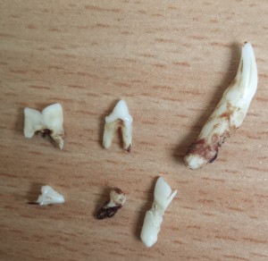 (Milchzahnretention ist ein häufiges Problem kleiner Hunderassen; bei dauerhaftem Bestehen der Zahndopplung wird der permanente Fangzahn durch eine frühzeitige Parodontose gefährdet)